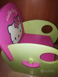 Sedia Hello Kitty in legno, qualche segno di usura e pennarello.
