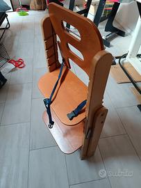 sedia legno /seggiolone con altezza seduta e altezza appoggio piedi regolabili