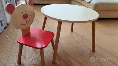 Sedia in legno naturale marca Classical World, acquistato presso Città del Sole. Dimensioni: altezza alla seduta 26 cm, schienale 54cm, seduta 27 x 27 cm. Ideale per bambini dai 2 ai 6 anni. Presenta piccoli segni di usura, è in condizioni generali molto buone.