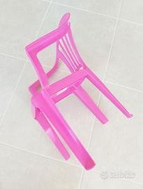 Sedia fuxia nuova, comprensiva di etichetta, alta 50 cm e larga 33 cm