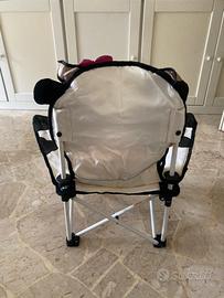 Simpatica sedia pieghevole per bambini a forma di mucca. Perfetta per far sedere i più piccoli in modo divertente a casa, mare e campeggio - Design a forma di mucca con dettagli colorati. - Struttura pieghevole per un facile trasporto e stoccaggio. - Seduta comoda per i bambini. Nessun difetto ma presenta qualche macchia sul tessuto ed è da lavare Motivo mucca Molly Adatta a campeggio Dimensioni: circa 36 x 36 x 58 cm Materiale struttura: acciaio (verniciato a polvere) Pieghevole Misure chiusa 15 x 15 x 60