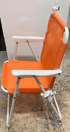 Sedia prendisole per bambini pieghevole, in ottime condizioni, adatta per spiaggia o per piscina, colore arancio e con predisposizione per porta ombrellino.