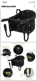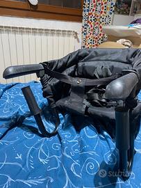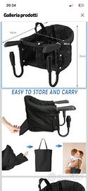 Marca Surplex, usato una volta. Fino a 15 kg . Dimensioni e larghezza tavolo supportata come da foto . Con cinture di sicurezza e pratica borsa (riposta in una tasca sotto la seduta) per trasportarlo facilmente