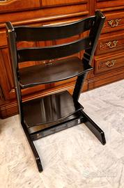 Vendo sedia seggiolone Stokke Tripp Trapp nera lucida, molto ben tenuta, minimi segni di utilizzo. Puoi montare baby set, vassoio e culletta newborn se serve.