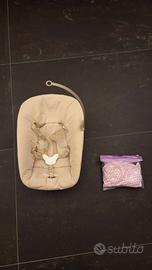 Completa di accessori: NEW BORN SET (seggiolone da collegare alla sedia), di protezione da caduta per bimbi che crescono.