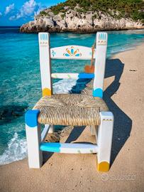 sedie in legno artigianali, colorate per bambini .
