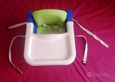 Si adatta ad ogni tipo di sedia ed è dotata di una cinghia per il fissaggio alla sedia ed una per assicurare il bambino alla sedietta.