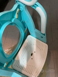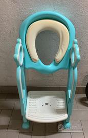 Vendo sedile riduttore wc per bambini “winnie the pooh”, colore bianco e azzurro, con seduta imbottita rimovibile e scaletta-poggiapiedi regolabile su due altezze; chiavetta per avvitare/svitare le varie parti inclusa. Usato ma ancora in buono stato.