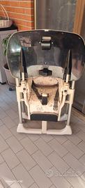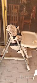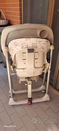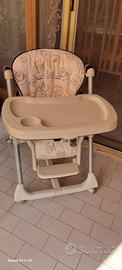 Sediolone Peg Perego regolabile in altezza e reclinabile si sposta facilmente grazie alle rotelle dotato di doppio vassoio pappa/gioco colore beige con orsetti