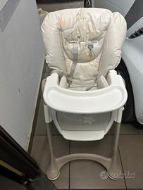 Vendo sediolone per bambini completo di cinghie e cuscino, reclinabile e regolabile in altezza, con ruote munite di relativi freni e vassoio con porta bicchieri.
