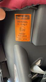 Seggiolino 0-13 kg Inglesina colore rosso bordeaux Base (non isofix) agganciabile all’auto tramite cintura.