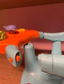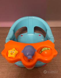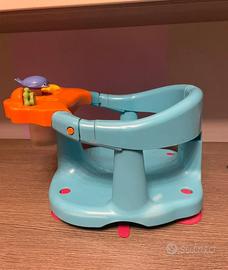 Seggiola per doccia con ventose per aderire perfettamente ad ogni superficie. Dal pesciolino centrale esce l’acqua a spruzzo contenuta nel cilindro trasparente. Usato ma perfettamente funzionante. Segni d’usura come da foto allegate