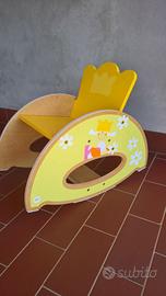 Vuoi stupire la tua bimba con un regalo originale? Dai una lettura al mio annuncio! Vendo seggiolina a dondolo in legno marca "SEVI" nuova mod. "PRINCIPESSA", ideale come complemento d'arredo per la cameretta, oppure per trascorrere del tempo libero in allegria, giocando e/o leggendo un bel libro.