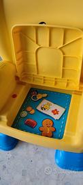 Seggiolina parlante gialla Fisher Price, con bottoni funzionanti e canzoncine.
