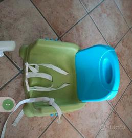 vendo seggiolino alzasedia marca Fischer price usato ma ben conservato munito di tutte le sue parti funzionanti,il tavolo si smonta rapidamente è può diventare alzasedia.