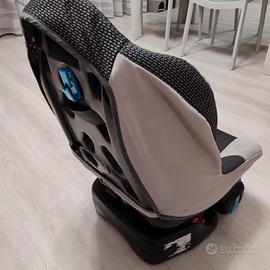 Seggiolino auto molto comodo con seduta larga in buone condizioni generali con normali segni di usura dovuti al normale utilizzo. Non ha l'attacco isofix ma si fissa solo con la cintura dell'auto. La fodera in tessuto è stata appena lavata.