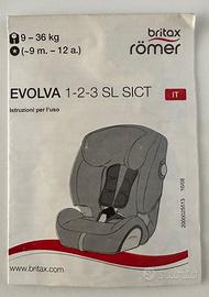 BRITAX RÖMER Seggiolino Auto EVOLVA 1-2-3 SL SICT Evolutivo Bambini da 9 a 36 kg (Gruppo 1/2/3) da 9 Mesi a 12 Anni Marchio tedesco TOP. - protezione del sollevatore con schienale; - isofix o cintura di sicurezza a tre punti; - CLICK & SAFE: II SICT regolabile offre una protezione superiore al bambino in caso di urto laterale; - imbracatura a 5 punti; - rivestimento sfoderabile;