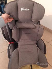 Seggiolino Giordani per auto da 9kg fino a 36 kg, con cuscino riduttore per neonati. Si aggancia con le cinture dell'auto.