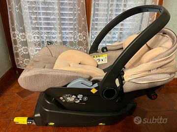 Primo Viaggio Lounge: seggiolino auto reclinabile, lo schienale si reclina e il poggiagambe si allunga, consentendo al bambino di sdraiarsi anche in auto. Base I-Size e telaio passeggino.