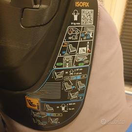 Seggiolino auto Bebeconfort Axissfix con aggancio isofix adatto per bambini da 61 a 105cm. Peso massimo 19kg. Completamente sfoderabile e lavabile. Pezzetto in polistirolo danneggiato (visibile in foto).