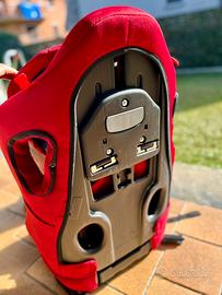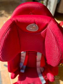 Rivestimento di colore rosso, molto traspirante e completamente sfoderabile tramite una pratica zip posta di lato. Questo aspetto è fondamentale per permettere ai bambini di viaggiare freschi anche nelle giornate più calde e di poter lavare comodamente in lavatrice il rivestimento.