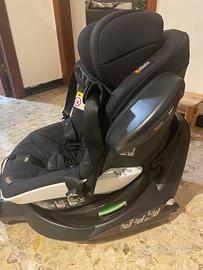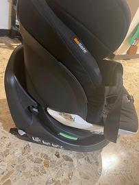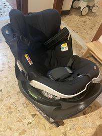 Seggiolino auto girevole e reclinabile, con aggancio isofix integrato.
