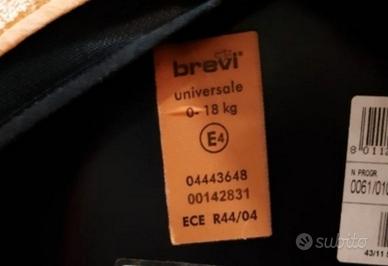 Vendo seggiolino auto Brevi universale adatto a bambini da 0 a 18 kg, on ottime condizioni. Colore principale grigio, completo di:
