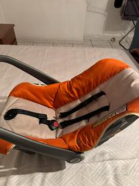 In vendita seggiolino auto CAM per neonati, modello Area Zero+ (gruppo 0+). Adatto da nascita fino a circa 13 kg (0-12/15 mesi circa, altezza fino a 75 cm). Omologato secondo la normativa europea ECE R129 i-Size (o R44/04 a seconda della versione esatta). Caratteristiche principali: • Colore vivace arancione con inserti beige/avorio • Cinture di sicurezza a 3 punti con chiusura centrale facile • Maniglia di trasporto regolabile (molto comoda per spostare il bambino senza svegliarlo) • Protezioni laterali imbottite per la testa • Rivestimento morbido e imbottito, sfoderabile e lavabile • Si installa in auto in senso contrario di marcia (posizione più sicura per i neonati) • Fissaggio con le cinture dell’auto (3 punti) Perfetto per i primi mesi di vita del bambino, leggero e facile da trasportare. Si può usare anche come ovetto da passeggio o da agganciare a passeggini CAM compatibili. Condizioni: Usato ma in buono stato generale. Leggeri segni d’uso normali per un articolo di questo tipo (nessuna rottura, cinture integre, plastica senza crepe). Interno pulito e lavato. Ho ancora [specifica se hai: le istruzioni / la scatola originale / altro]. Motivo della vendita: non più necessario.