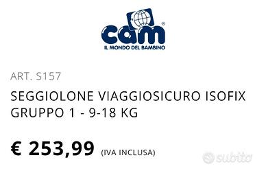 seggiolino auto cam attacco isofix viaggiosicuro
