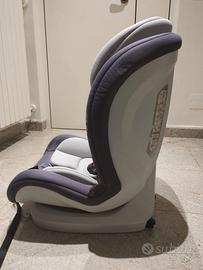 Gruppo 1 - da 9 a 18 Kg: con Sistema Isofix (ganci Isofix + cinghia Top Tether), il bambino si assicura al seggiolino tramite le cinture integrate a 5 punti del seggiolino stesso.