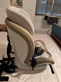 In vendita seggiolino auto CAM gruppo 1-2-3 (da 9 a 36 kg, circa 9 mesi – 12 anni), omologato con sistema Isofix. Colore beige / tortora elegante e unisex, molto comodo grazie all’imbottitura spessa e alle protezioni laterali rinforzate per la testa. Caratteristiche principali: • Aggancio Isofix con connettori posteriori + barra di supporto anteriore (gamba di appoggio) per una maggiore stabilità e sicurezza • Cinture di sicurezza a 5 punti regolabili (con imbottiture sulle spalle) • Schienale regolabile in altezza e inclinazione (cresce insieme al bambino) • Poggiatesta regolabile con sistema “PULL” • Riduttore per i più piccoli incluso • Tessuto sfoderabile e lavabile • Base stabile e robusta Accessori opzionali • Dispositivo anti-abbandono Tippy Smart Pad + 10 euro • Barra di supporto Isofix (la struttura nera a “T” mostrata nelle foto) a +10 €