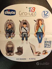 Seggiolino auto Chicco Gro-up 123 per bimbi da 9 a 36 kg (gruppi 1-2-3), colore grigio, in ottime condizioni usato molto poco. No isofix. Solo consegna a mano in Milano e provincia.