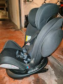 Rotazione 360°:Base integrata che permette di ruotare il seggiolino per facilitare l'inserimento del bambino e passare facilmente dall'orientamento opposto a quello di marcia.
