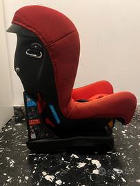 Seggiolino rosso con cinture per auto marca Chicco. Usato, ma in ottime condizioni. È possibile distenderlo quando il bimbo si addormenta.