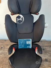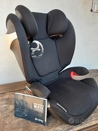 N.B. NON SPEDISCO Seggiolino auto colore nero Cybex Solution M-Fix, tenuto molto bene. Rivestimenti come nuovi. È progettato per bambini dai 3 ai 12 anni circa (Gruppo 2/3, peso 15-36 kg). Altezza completamente regolabile, segue la crescita del bambino. Include un poggiatesta reclinabile brevettato per mantenere la testa del bambino in una posizione sicura durante il sonno. Dotato di sistema L.S.P.Plus (Protezione Lineare nell'Impatto Laterale) per una maggiore sicurezza. Utilizza il sistema ISOFIX Connect per una maggiore stabilità, ma è compatibile anche con vetture non dotate di ganci ISOFIX.