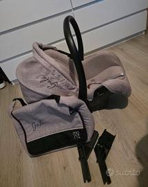 Vendo un seggiolino auto praticamente nuovo, completo di borsa fasciatoio coordinata e adattatori per passeggino. Il set è stato ricevuto da conoscenti, non è mai stato utilizzato ed è in condizioni pari al nuovo. Il colore è un elegante tessuto mélange grigio-viola con una delicata tonalità violacea. Nota: a causa della luce, il colore esatto è difficile da catturare nelle foto; nella realtà è più chiaro e più viola di quanto sembri nelle immagini. Il seggiolino è adatto ai neonati dalla nascita fino a circa 13 kg (Gruppo 0+). La borsa è pratica e capiente, ideale per tutti gli accessori del bambino. I due adattatori permettono di fissare facilmente il seggiolino al telaio del passeggino. La fodera è completamente pulita e senza macchie. Condizioni: come nuovo Utilizzo: mai usato Completo di: seggiolino auto, borsa, adattatori