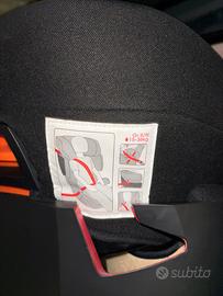 Facile da fissare al sedile dell'auto con la cintura di sicurezza o con il sistema ISOFIX, rivestimento sfoderabile e lavabile in lavatrice.