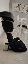 Protezione dagli impatti laterali integrata (Sistema L.S.P.), poggiatesta reclinabile in 3 posizioni - Poggiatesta regolabile in altezza in 11 posizioni, schienale reclinabile, comodo cuscino di seduta - da fissare al sedile dell'auto con la cintura di sicurezza e opzionalmente con il sistema ISOFIX per una maggiore stabilità, rivestimento sfoderabile e lavabile in lavatrice (30°C)