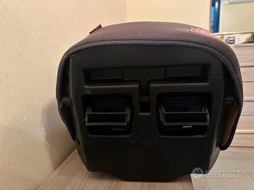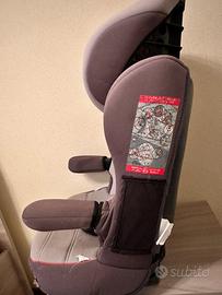 Il poggiatesta è modulabile in altezza e sotto la seduta c'è un sistema per tenere il seggiolino leggermente all'indietro quando è posizionato