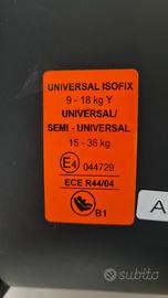 Vendo seggiolino come da foto, attacchi Isofix. Buono stato generale, solo i tessili della seduta hanno qualche macchia. Solo ritiro di persona e pagamento in contanti a Gorgonzola (MI). Non spedisco.