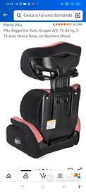 Vendo seggiolino auto 15/36 Kg, Gruppo 2/3, Anni 3/12 marca Piku usato molto poco usato nell' auto dei nonni.