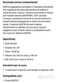 Seggiolino auto marca Cybex modello X-Fix, aggancio Isofix (ma anche normale) gruppo di utilizzo 2-3.