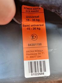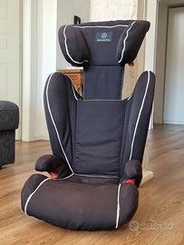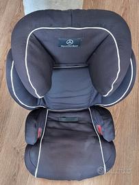 Seggiolino auto KIDFIX per bambini di età compresa tra circa 3,5 e 12 anni (peso corporeo da 15 a 36 kg). Orientato in avanti, con base rialzata e schienale regolabile in altezza. Fissaggio tramite connettori ISOFIX e la cintura a tre punti del veicolo. Inclinazione regolabile in 3 posizioni, incluso un poggiatesta regolabile. Modello: Mercedes-Benz KIDFIX