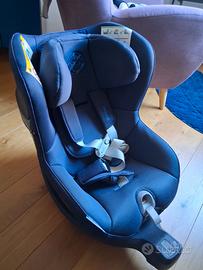 Seggiolino auto isofix I-size da 0 a 4 anni, max 18kg girevole. Colore blu. Il seggiolino è usato ma in ottime condizioni come da foto. Nessuna usura sulla parte del tessuto o del telaio. Grazie al fatto che sia girevole offre la possibilità di utilizzarlo contro e a favore del senso di marcia e inoltre inserire il bambino comodamente con ingresso laterale. Io e mia moglie abbiamo apprezzato moltissimo questa funzionalità. Si tratta di uno dei seggiolini ritenuti più sicuri da Altroconsumo