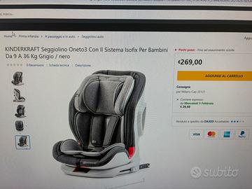 Vendo seggiolino auto isofix reclinabile marca Kinderkraft modello oneto 3. Molto confortevole e in ottime condizioni per bimbi da 9 a 36 kg. Alzatesta regolabile comprensivo di riduttore. Occupa poco spazio in macchina in quanto molto compatto ma comodo per i bambini. Omologazione dell’unione europea ece r 44/04.