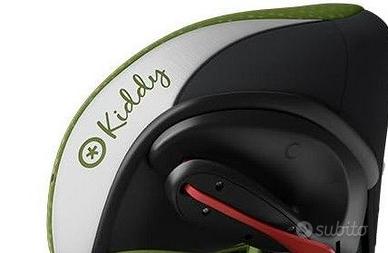 Il seggiolino è fissato con la cintura a tre punti dell’auto ed è dotato di Shock Absorber Kiddy, che attenua le forze trasmesse dalla cintura in caso di impatto. Il sistema di aggancio guidato, evidenziato in rosso, facilita l’installazione e riduce il rischio di errori.