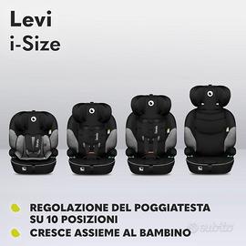 FOR THE SMALLER AND LARGER CHILDREN: The Levi i-Size fits in any car and offers a universal forward facing installation. The baby car seat is dedicated to different body groups. From 75-105 cm to 18 kg, where the child is also fastened with the 5-point safety belts. Group for older children from 100 - 150 cm, where the installation is done using the 3-point safety belts
