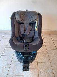 Seggiolino auto i-size dai 40 cm ai 105 cm di altezza (da 0 a 4 anni). Installazione (facile) tramite agganci isofix. Può essere ruotato a 360°. Reclinabile in più posizioni. Cinture di sicurezza a 5 punti.