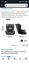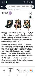 Seggiolino auto trio, da 0 a 18 kg. Marca Nania. Ottime condizioni, privo di difetti.