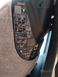 Seggiolino auto axissfix air dotato di airbag. Utilizzabile in senso contrario di marcia e in senso di marcia. Adatto fino a 105 cm. Ruota di 360 gradi